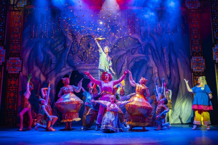 The plot struggles to cut through the sequins, and the first half requires some clunky set ups to pay off in the end. A chorus that echoes Abanazer’s name whenever it’s mentioned gets old quickly and his desire to turn anyone annoying into a pigeon should not be such hard work.