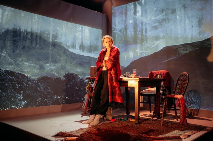 The boys are in bed and historian Anna is slumped at the kitchen table, feeling for a large glass of red among the chaos of work-life detritus. A projected backdrop of deserted island landscapes underlines that she is pretty much alone with two wee weans and a shonky internet connection in a very remote part of the world.